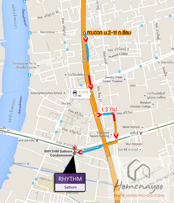 ระยะทางจากจุดลงทางด่วนขั้นที่ 2 ทางออก น.2-11 ถนนสีลม มายังโครงการ ประมาณ 1.3 กม. ใช้เวลาในการเดินทางประมาณ 5 นาที