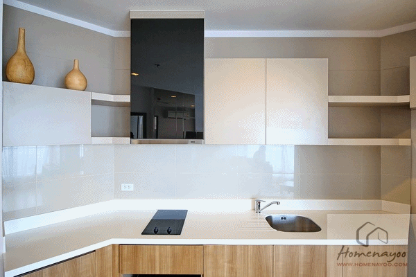ภาพรวมเคาน์เตอร์ครัวมีให้ครบชุดทั้งด้านบนและด้านล่าง พร้อมด้วย ฮอบ ฮูด ซิงค์ ของ FRANKE