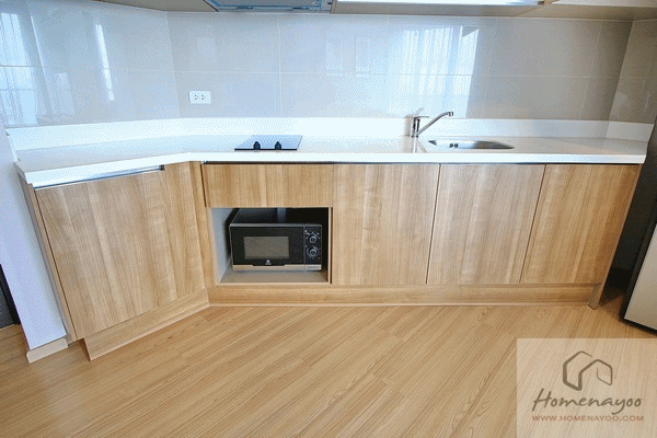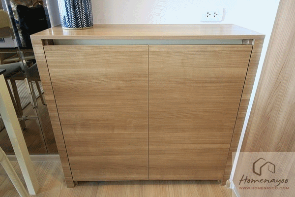 ช่วงบริเวณหน้าประตูมีช่องสำหรับใช้งานเป็นช่องวางเครื่องซักผ้าและตู้เก็บรองเท้า