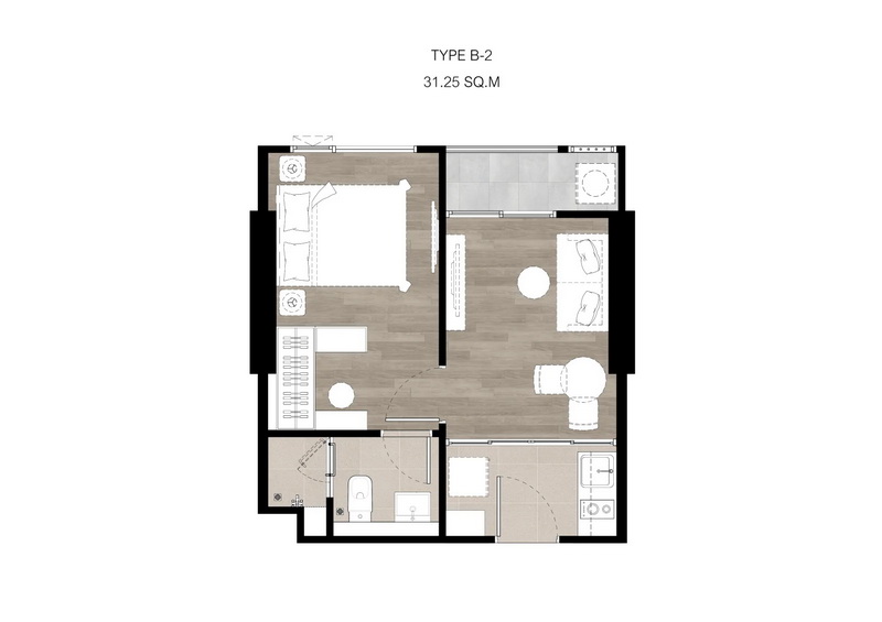 แปลนห้องพัก 1 Bedroom : Type B-2 ขนาด 31.25 ตร.ม.