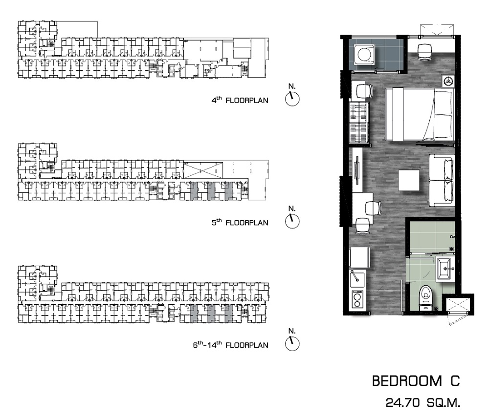 TYPE C : 1 Bedroom ขนาด 24.70 ตร.ม.