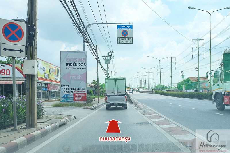 เรามาเดินดูสภาพแวดล้อมโดยรอบโครงการคร่าวๆ กันค่ะ เริ่มจากบริเวณหน้าที่ดินโครงการ จะอยู่ติดถนนฉลองกรุง บริเวณจุดกลับรถใต้สะพาน