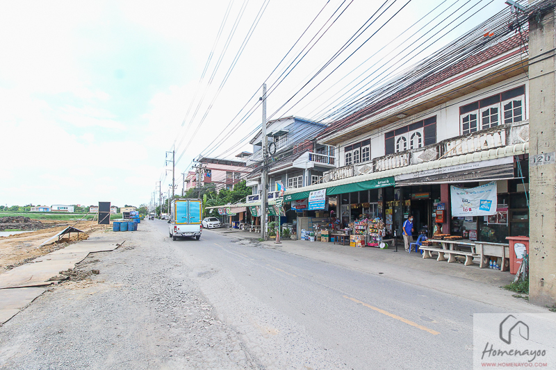 ติดกับที่ดินอีกฝั่งของโครงการจะเป็นถนนเลียบคลองลำกอไผ่ ซึ่งเส้นนี้จะสามารถวิ่งเข้านิคมอุตสาหกรรมได้ในระยะทางประมาณ 3-4 กม. ค่ะ