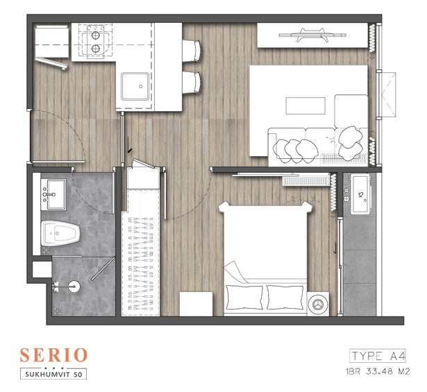 TYPE A4 : 1 Bedroom ขนาด 33.48 ตร.ม.