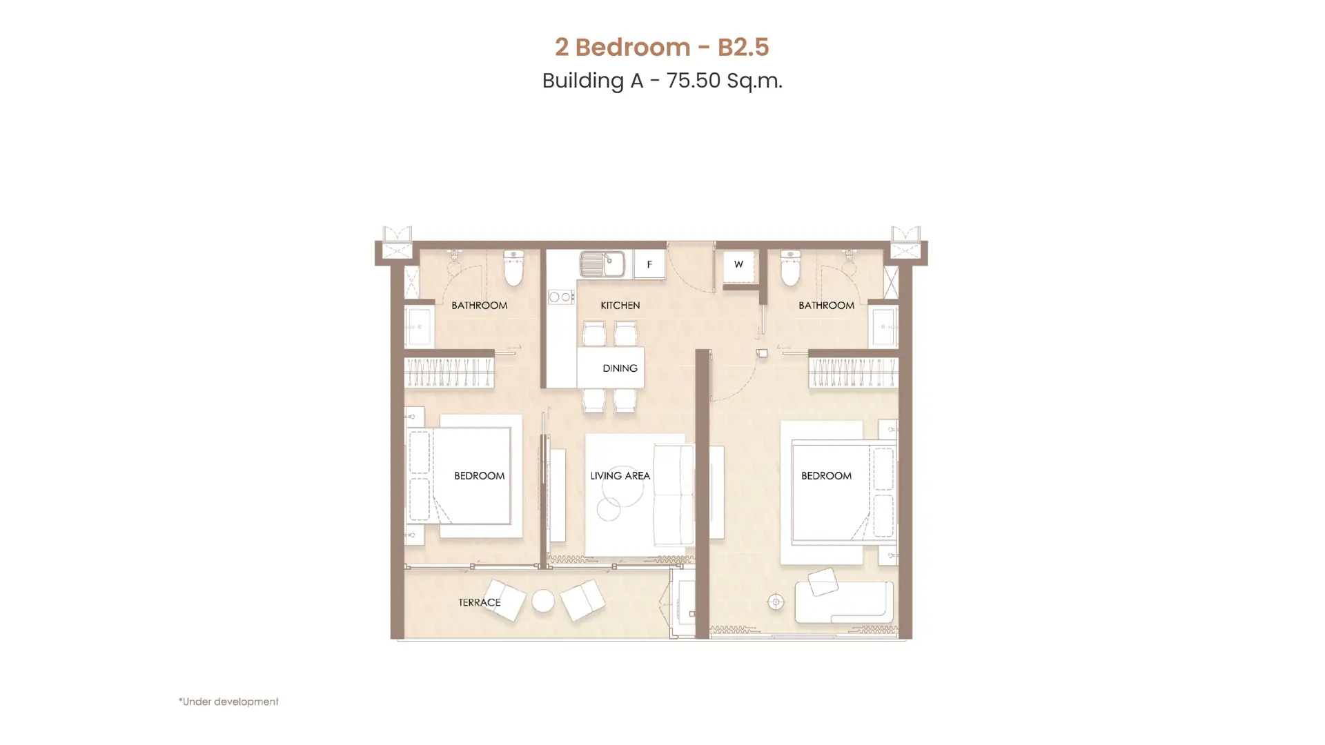 ภาพและบรรยากาศจำลองภายในห้องพักแบบ 2 Bedrooms