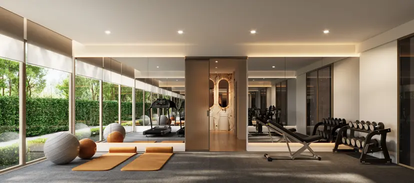 ภาพและบรรยากาศจำลองภายใน Gym พร้อมเครื่องออกกำลังกาบครบครัน