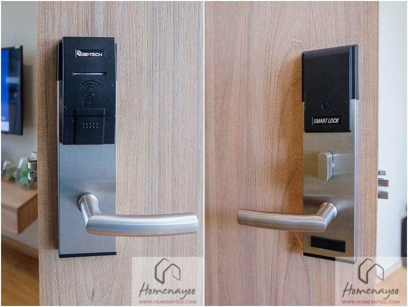 สุขภัณฑ์ครบชุด แยกส่วนแห้งส่วนเปียก สำหรับ 2 ห้องนอนจะได้เป็นห้องอาบน้ำ + อ่างอาบน้ำ สุขภัณฑ์ภายในห้องน้ำ Grohe และ American Standard โถสุขภัณฑ์แบบ Washlet, ติดตั้งเครื่องปรับอากาศแบบฝังฝ้า Conceal Type ครบทุกห้องพร้อมประตูแบบ Digital Door Lock ของ BE – TECH ค่ะ