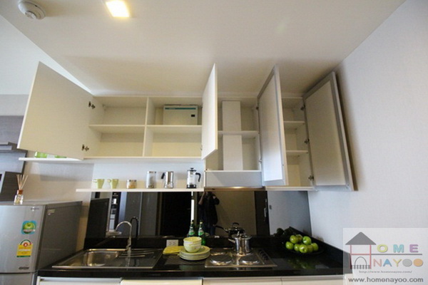 บิวท์อินครัวด้านบน มีตู้เก็บของใช้ให้เหมือนกันค่ะ ช่วยให้เก็บของได้เป็นสัดส่วน ไม่รกสายตา