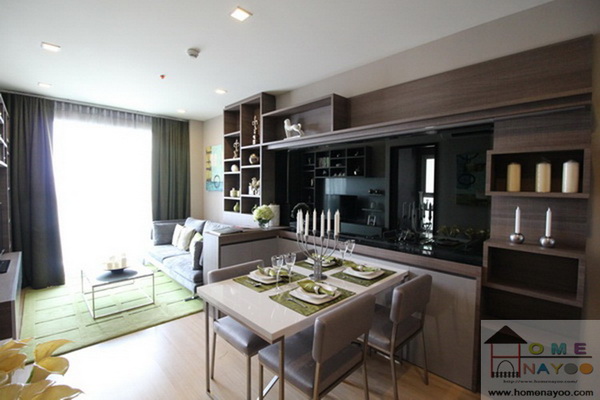 ภายในห้องปูพื้นลามิเนตลายไม้ เพดานห้องสูง 2.5 เมตร >> เข้ามาส่วนแรกจะเป็นส่วนครัว ถัดเข้าไปเป็นส่วนนั่งเล่นค่ะ ส่วนด้านซ้ายมือจะเป็น Study Room ห้องน้ำ และห้องนอนค่ะ