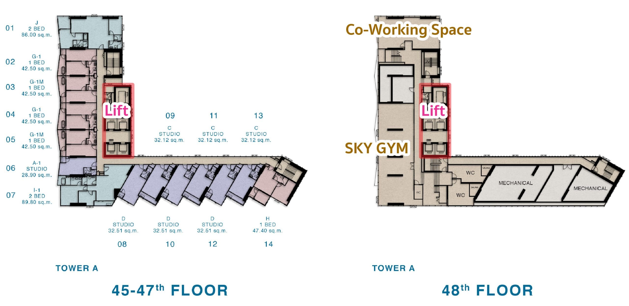 ที่ชั้น 48 อาคาร A มี Sky Gym พร้อมเครื่องออกกำลังกายครบครัน พร้อมวิวทะเล และ Co-Working Space ไว้นั่งทำงานหรือนั่งพักผ่อนได้