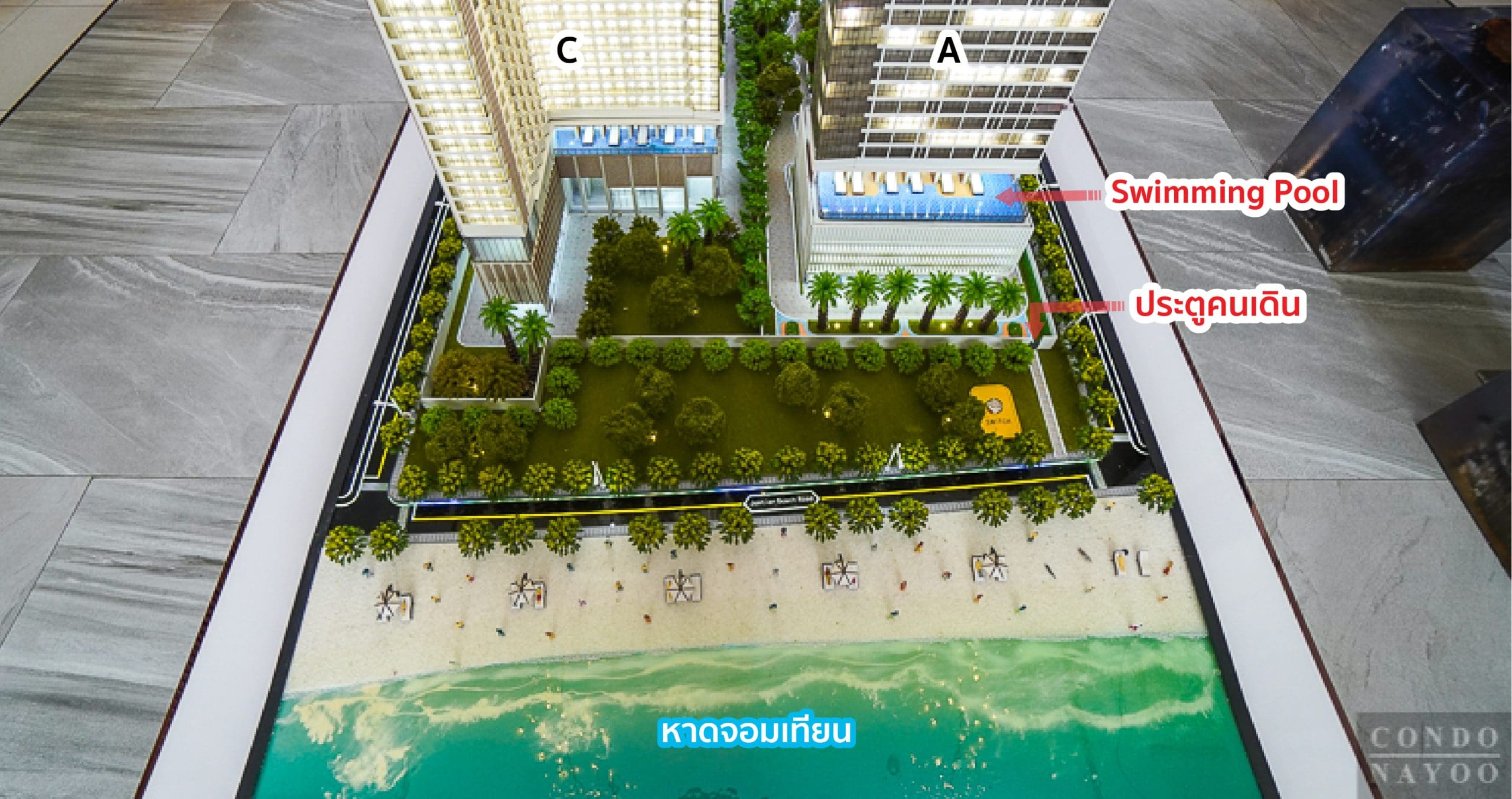ส่วน Tower C จะเปิดขายในอนาคต และด้านหน้าอาคาร C จะเป็น Community Mall ที่เป็น Sales Gallery อยู่ตอนนี้ครับ โดยรอบโครงการส่วนใหญ่จะเป็นอาคารพาณิชย์ คอนโดมิเนียม และบ้านพักอาศัย บรรยากาศดีห่างจากหาดจอมเทียน เพียง 200 ม.*