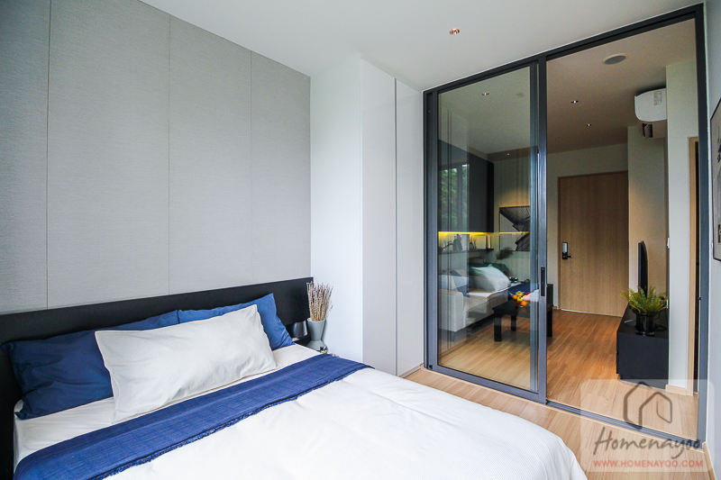 โดยโครงการจัดวางเฟอร์นิเจอร์มาให้ดูเป็นตัวอย่าง ซึ่งยังมีพื้นที่รอบเตียงเหลือพอสำหรับเดินใช้งาน ทำกิจกรรม หรือจัดห้องเพิ่มเติมได้อย่างสบาย