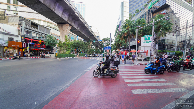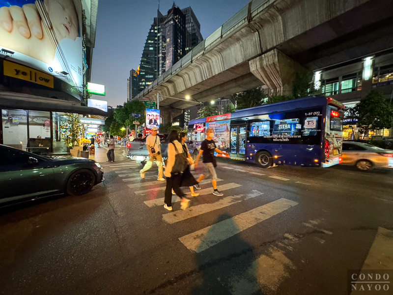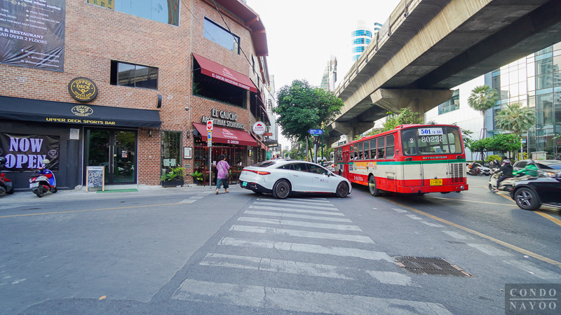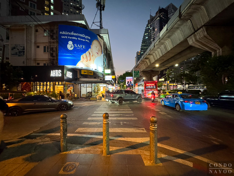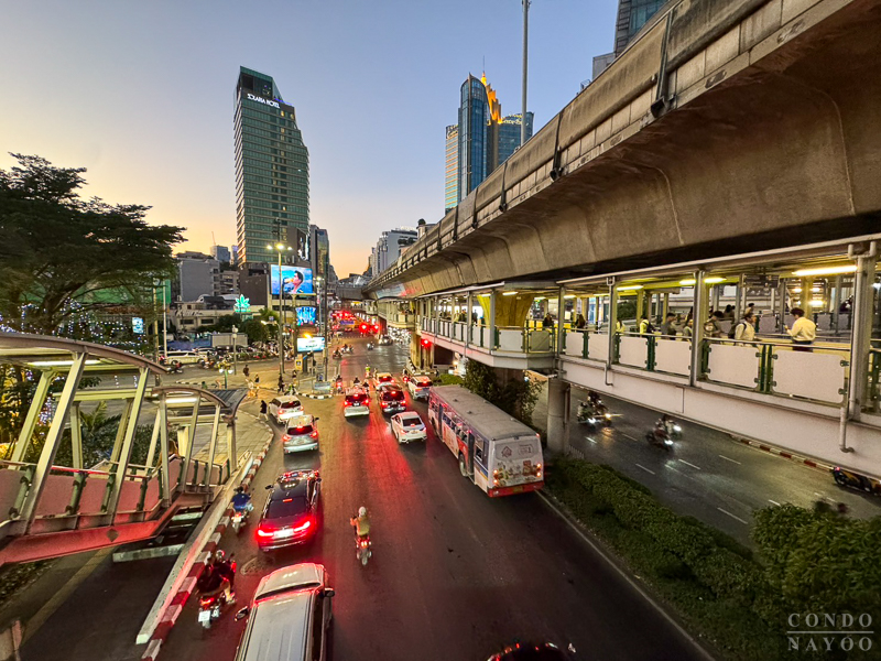 มองออกไปเป็นถนนสุขุมวิท และจุดกลับรถไปพร้อมพงษ์