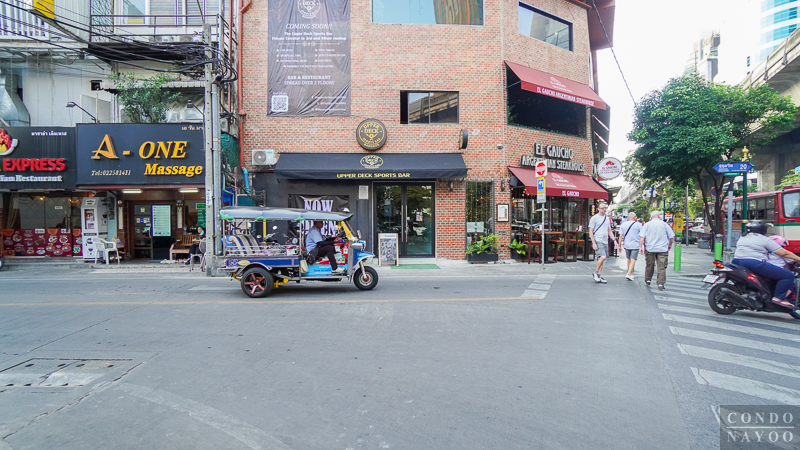 หน้าปากทางสุขุมวิท 20 มีร้าน El Gaucho และร้านนวดเปิดอยู่