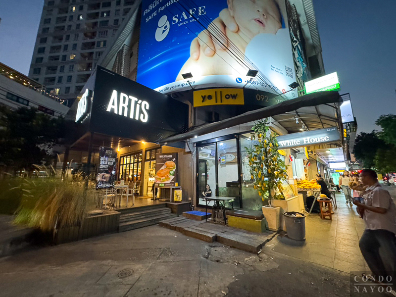 หน้าปากซอยมีร้านกาแฟ Artis Coffee Bangkok เปิดอยู่ด้วย