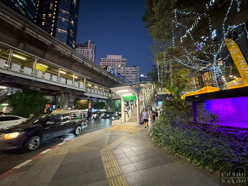 อีกสถานี คือ BTS พร้อมพงษ์ จะเดินออกไปทางด้านขวา ผ่าน Emsphere และสวนเบญฯ หรือใครจะใช้ Skywalk เดินขึ้นด้านบนไปต่อรถไฟฟ้าก็ได้เหมือนกัน โดยสถานีนี้จะมีระยะทางอยู่ที่ประมาณ 500 ม.* ค่ะ