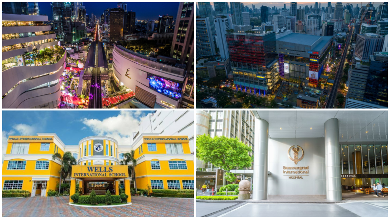 พื้นที่นี้ยังเป็นหนึ่งในโซนที่มีโรงพยาบาลมาตรฐานสากลให้เลือกมากที่สุดของกรุงเทพฯ ทั้งโรงพยาบาลด้านเวชกรรมเฉพาะทาง ผิวหนัง จักษุ และศูนย์การแพทย์แบบครบวงจร โรงพยาบาลชั้นนำอย่าง บำรุงราษฎร์, สมิติเวช สุขุมวิท, เมดพาร์ค