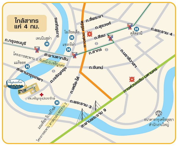 | สถานที่สำคัญใกล้เคียง | 1. โรงพยาบาลเจริญกรุงประชารักษ์ 2. โรงเรียนนานาชาติชูร์วเบอร์รี่ 3. โรงเรียนอัสสัมชัญ 4. โรงเรียนมณเฑียร ริเวอร์ไซด์ 5. ภัตตาคาร Good View 6. สำนักงานเขตบางคอแหลม |