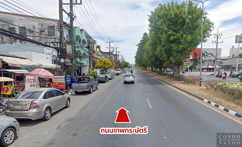 ถนนเทพกระษัตรี ⇒ กลับรถตรงแยกซอยประชาสามัคคี ⇒ ถึงโครงการ Supalai City Resort ภูเก็ต