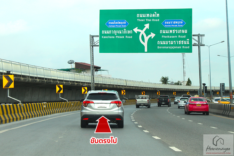 การออกนอกเมืองก็ง่าย กลับรถที่ใต้สะพาน จะเชื่อมไปยังถนนเทอดไท, ถนนกัลปพฤกษ์ ใช้ออกไปถนนเอกชัย, ถนนบางแค, ถนนกาญจนาภิเษก และ ถนนเพชรเกษม / จากถนนเพชรเกษม ขับขึ้นไปทางฝั่งขาออก จะเชื่อมสู่อ้อมน้อย, อ้อมใหญ่ ออกไปสมุทรสาคร-นครปฐมได้เลยค่ะ