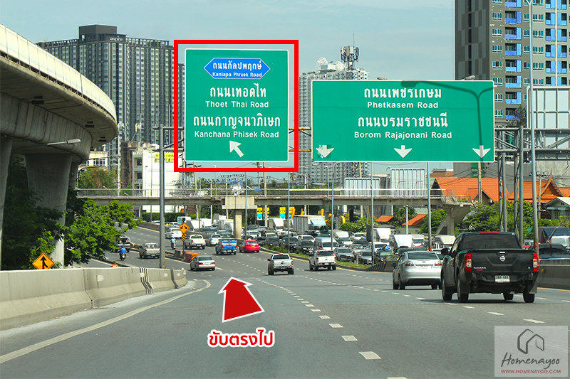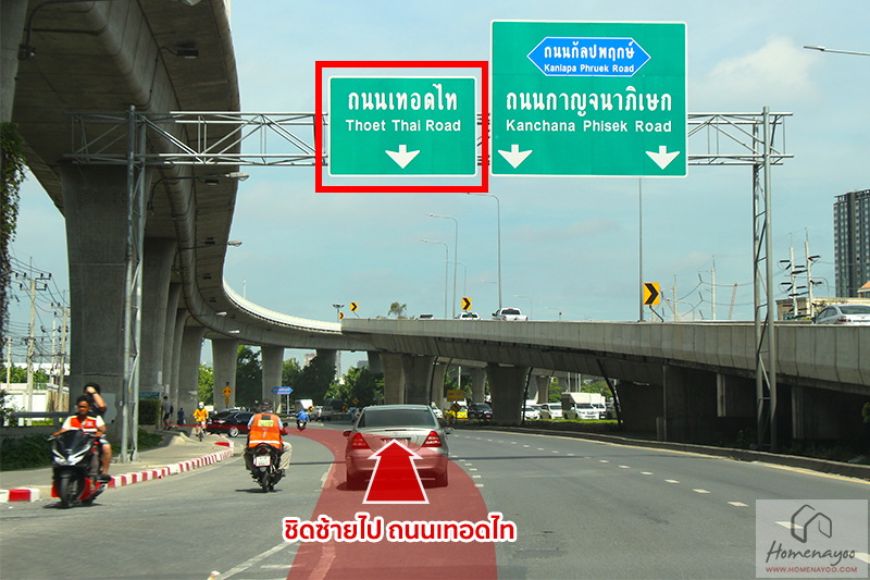 อีก 1 กม.ให้เตรียมชิดซ้ายตามป้ายไป ถ.เทอดไทค่ะ