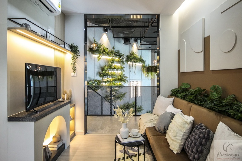 เพิ่มความ Cozy ด้วยต้นไม้ตกแต่งที่มีรูปทรงเป็นเอกลักษณ์ ผนัง Lobby ใช้เป็นกระจกเขียวตัดแสง แบบ Full Height ที่เปิดรับวิว Pocket Courtyard และ มุมมองภายนอกได้กว้าง ทั้งยังใช้เป็นช่องรับแสงแดดจากธรรมชาติในช่วงเช้าและกลางวันได้ดี ช่วยลดพลังงาน และ ประหยัดค่าไฟส่วนกลางได้ดีค่ะ