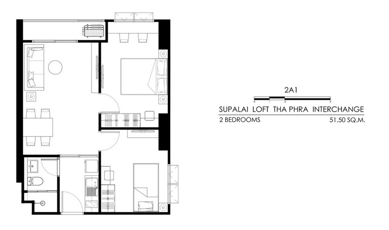 Type 2A1 2 Bedrooms 51.50 ตร.ม.