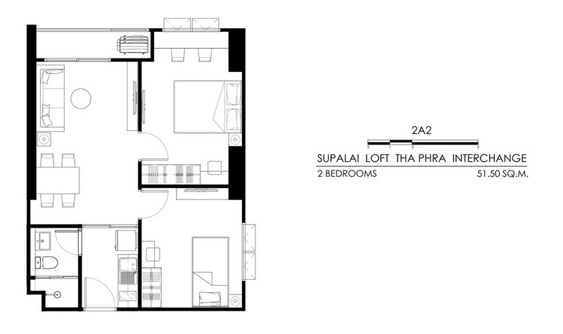 Type 2A2 2 Bedrooms 51.50 ตร.ม.