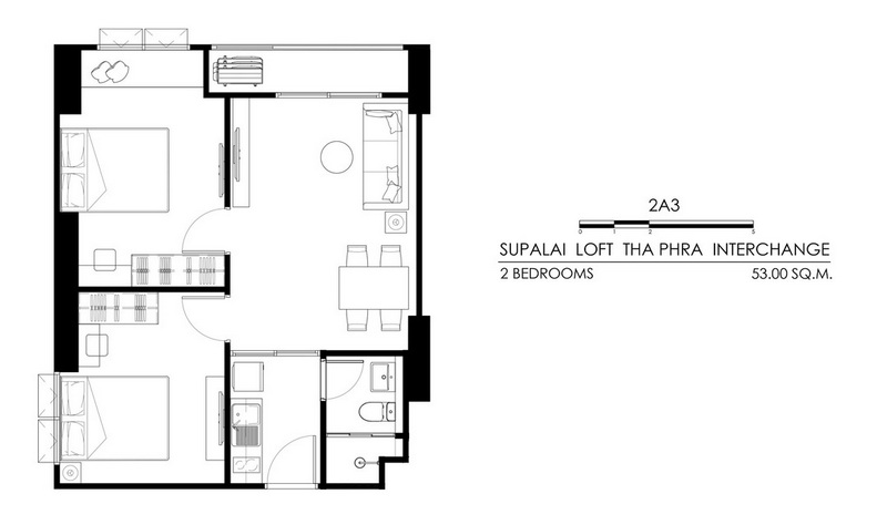 Type 2A3 2 Bedrooms 53.00 ตร.ม.