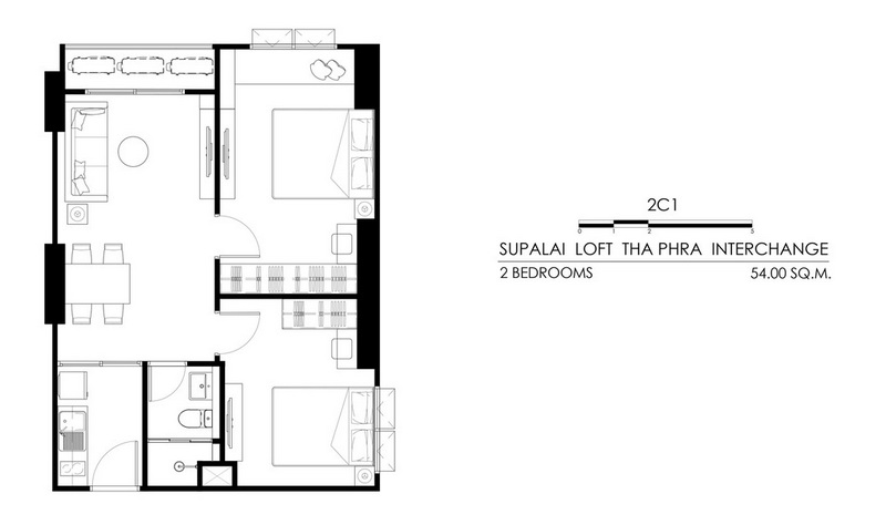 Type 2C1 2 Bedrooms 54.00 ตร.ม.