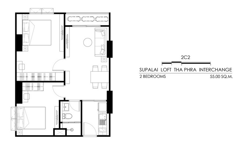 Type 2C2 2 Bedrooms 55.00 ตร.ม.