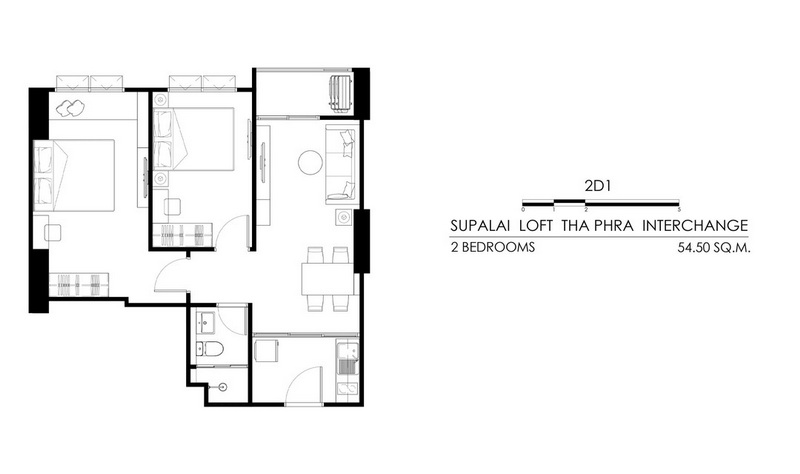 Type 2D1 2 Bedrooms 54.50 ตร.ม.