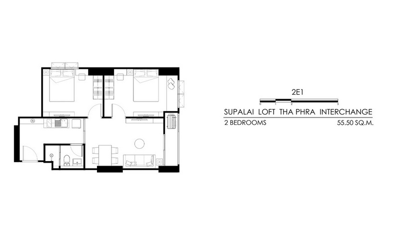 Type 2E1 2 Bedrooms 55.50ตร.ม.