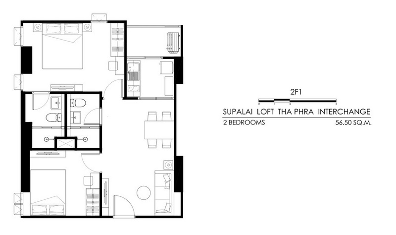 Type 2F1 2 Bedrooms 56.50 ตร.ม.