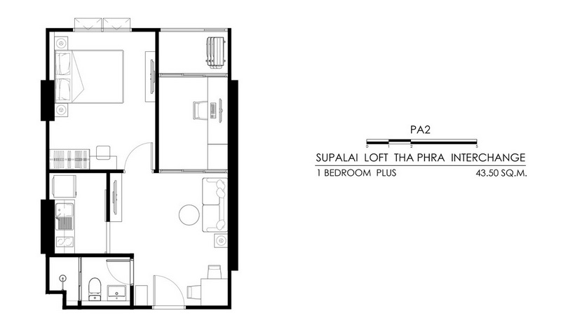 Type PA2 1 Bedroom Plus 43.50 ตร.ม.