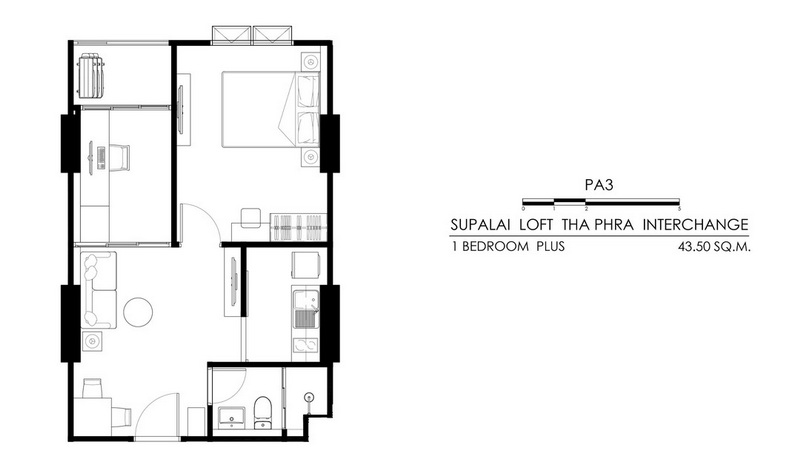 Type PA3 1 Bedroom Plus 43.50 ตร.ม.