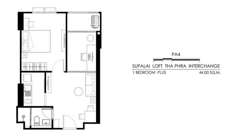 Type PA4 1 Bedroom Plus 44.00 ตร.ม.