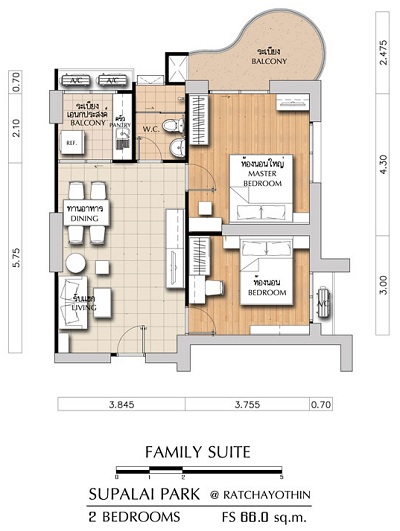 | ลักษณะห้องและขนาดห้อง | Studio, 1 Bed, 2 Bed, ห้องชุดร้านค้า |