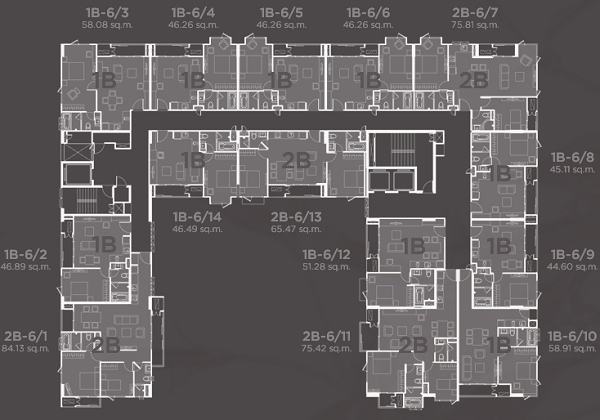 | ลักษณะห้องและขนาดห้อง | 1 Bed / 44.60 – 58.08 ตร.ม. 2 Bed / 65.47 – 84.13 ตร.ม. 3 Bed / 91.32 – 130.75 ตร.ม. Duplex / 94.38 – 153.88 ตร.ม. |
