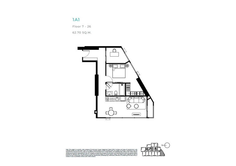 แปลนห้องพักแบบ 1 Bedroom ขนาด 62.70 ตร.ม.