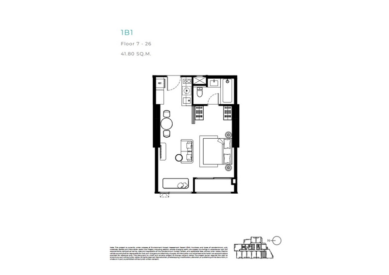 แปลนห้องพักแบบ 1 Bedroom ขนาด 41.80 ตร.ม.
