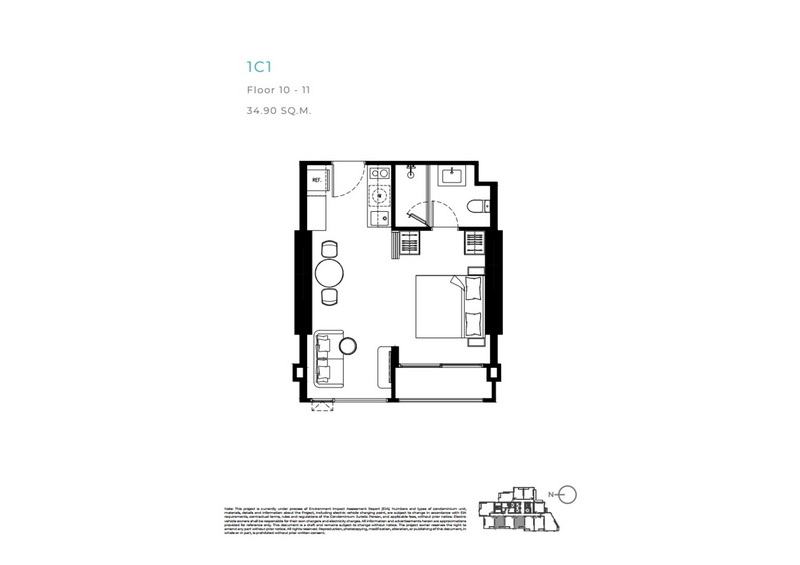แปลนห้องพักแบบ 1 Bedroom ขนาด 34.90 ตร.ม.
