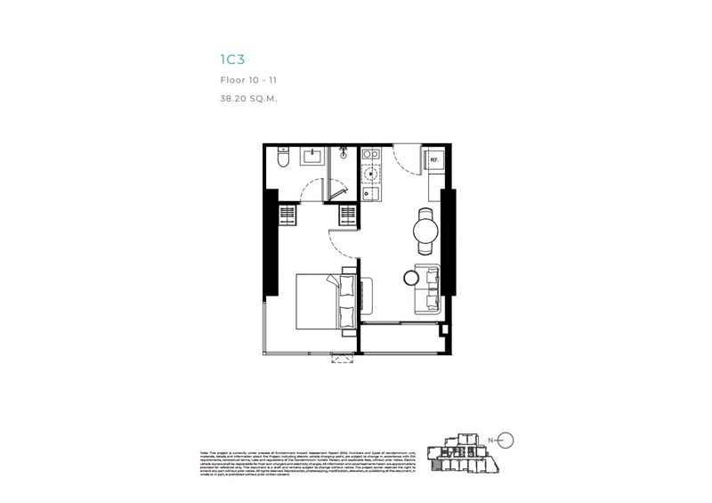 แปลนห้องพักแบบ 1 Bedroom ขนาด 38.20 ตร.ม.