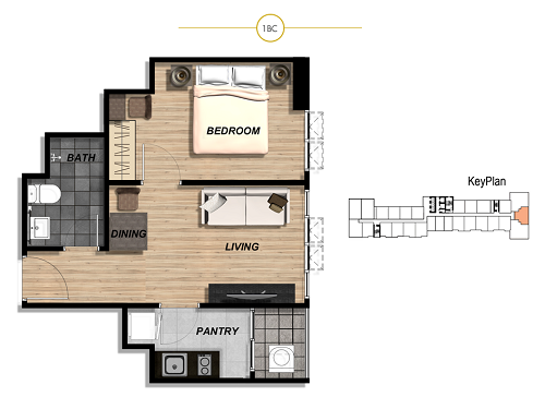 | ลักษณะห้องและขนาดห้อง | – Studio : 22.24 ตร.ม. – 1 Bedroom : 29-34 ตร.ม. – 2 Bedrooms : 48-58 ตร.ม. |