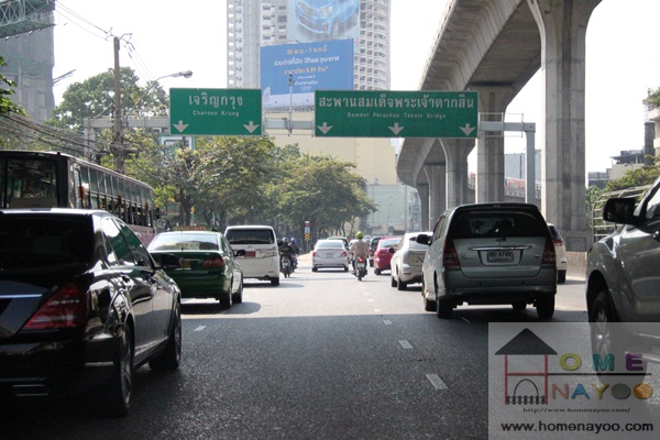 ขับผ่าน BTS ตากสินที่อยู่ด้านขวามือ