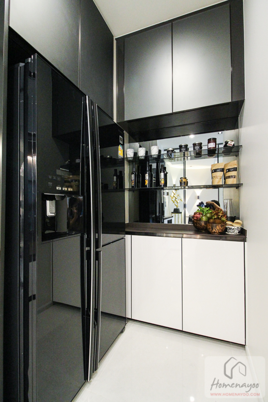 ตัวห้องขายแบบ Fully Fitted คือมีชุดครัวของ Küppersbusch แบรนด์เก่าแก่ของประเทศเยอรมนี และชุดเฟอร์นิเจอร์ Built in มาให้ ซึ่งสเป็คมาสวย เพิ่มที่เก็บของได้เยอะดี