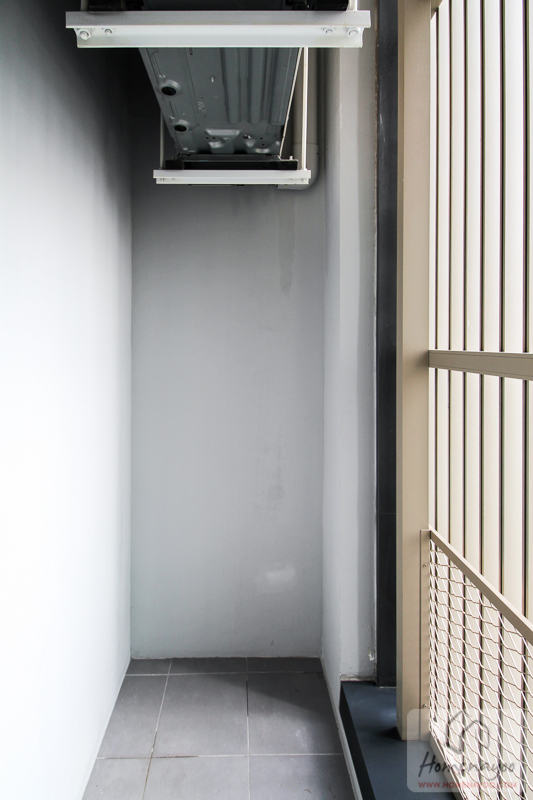 อีกฝั่งนึงของระเบียง มีประตูเก็บแอร์คอมเพรสเซอร์และงานระบบเป็นสัดส่วน