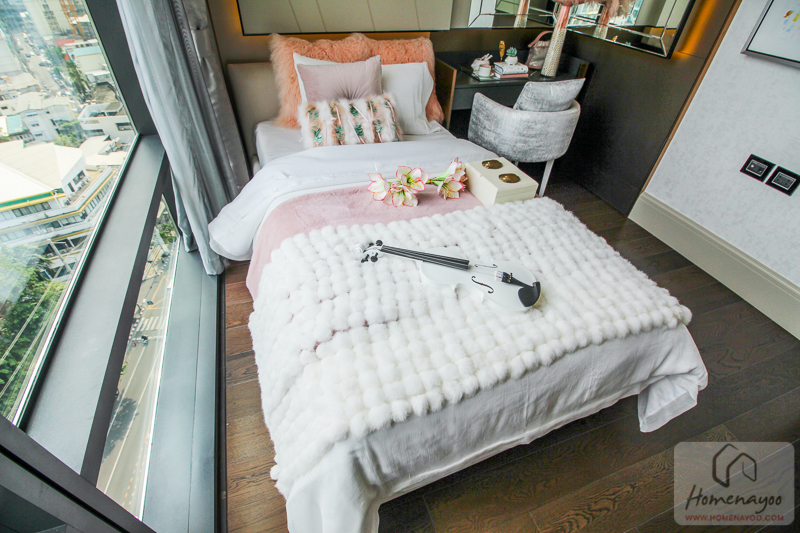 ในห้องนอนมีหน้าต่างบานใหญ่แบบ Full height หรือกระจกบานสูงจรดเพดานมาให้ มีกระจกเข้ามุมแบบ Bay Window ทำให้มุมมองในห้องดูกว้างขวาง และมองวิวได้กว้างขึ้น โดยบานซ้ายบนจะเป็นหน้าต่างบานกระทุ้ง นอกนั้นจะเป็นหน้าต่างบานฟิกซ์