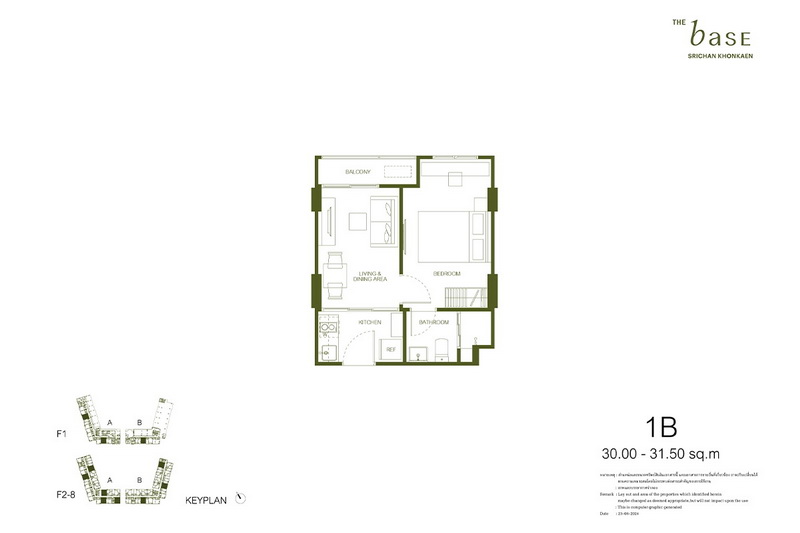 แปลนห้องพัก Type 1B : 30.00-31.50 ตร.ม.