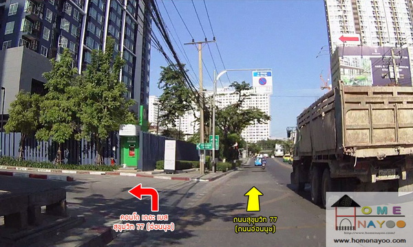 การเดินทางผมเริ่มจาก สี่แยกอโศก(สุขุมวิท) > ถนนสุขุมวิท > เลี้ยวซ้ายเข้า ถนนสุขุมวิท 77 หรือ ถนนอ่อนนุช > คอนโด เดอะ เบส สุขุมวิท 77 (อ่อนนุช)